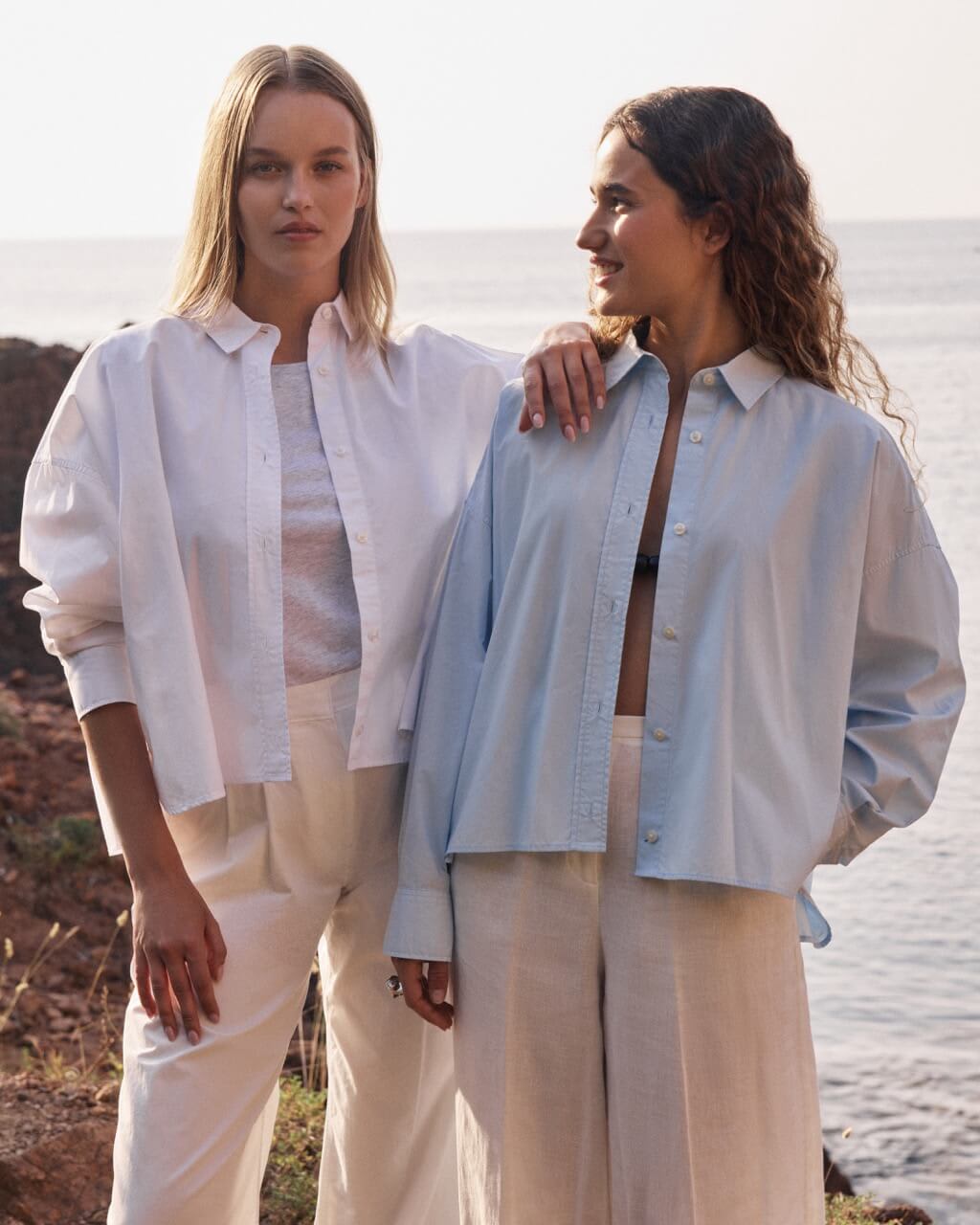 Su silueta oversize crea una forma moderna, ligera y estructurada. La superficie de popelina ofrece un tacto suave y un aspecto nítido que se mantiene durante todo el día.